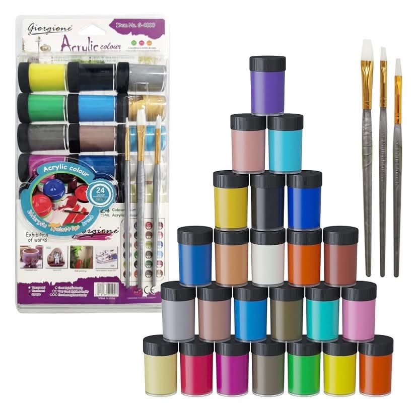 سيت ألوان أكرليك مع ثلاث فرش رسم 🎨🖌️✨